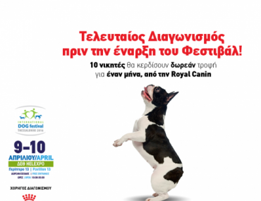 Το dogfestival.gr διοργανώνει διαγωνισμό και δίνει τη δυνατότητα σε 10 τυχερούς να κερδίσουν την τροφή για το σκυλάκι τους για 1 μήνα!