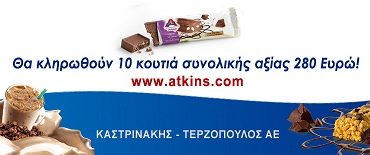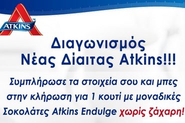 Η σελίδα Atkins Greece διοργανώνει διαγωνισμό και σας δίνει τη δυνατότητα να κερδίσετε 10 κουτιά με σοκολάτες Atkins Endulge.