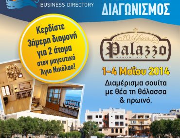 Η σελίδα aghiosnikolaos.eu διοργανώνει διαγωνισμό και σας δίνει τη δυνατότητα να κερδίσετε 3ήμερη διαμονή σε σουίτα στο Palazzo Arhontiko Apartments!