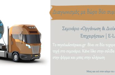 Το mysudentpass.gr διοργανώνει διαγωνισμό και σας δίνει τη δυνατότητα να κερδίσετε δύο συμμετοχές σε σεμινάριο με θέμα “Οργάνωση και Διοίκηση Μεταφορικών Επιχειρήσεων | E-learning”, συνολικής αξίας 120 ευρώ.