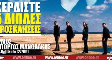Το Ogdoo.gr εξασφάλισε για τους αναγνώστες του πέντε διπλές προσκλήσεις για τη συναυλία των Αρμός & του Γιώργη Μανωλάκη στο Half Note Jazz Club, στις 27 Σεπτεμβρίου 2012.