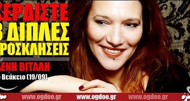 Το Ogdoo.gr εξασφάλισε για τους αναγνώστες του τρεις διπλές προσκλήσεις για τη συναυλία της Ελένης Βιτάλη στο Βεάκειο Θέατρο Πειραιά, στις 19 Σεπτεμβρίου 2012.