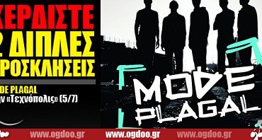 Το Ogdoo.gr εξασφάλισε για τους αναγνώστες του δύο διπλές προσκλήσεις για τη συναυλία των Mode Plagal & των φίλων τους στην Τεχνόπολη Δήμου Αθηναίων, στο Γκάζι, την Πέμπτη 05 Ιουλίου 2012.