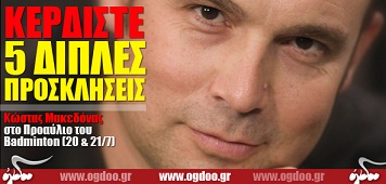 Το Ogdoo.gr εξασφάλισε για τους αναγνώστες του πέντε διπλές προσκλήσεις για τη συναυλία του Κώστα Μακεδόνα, στο μουσικό προαύλιο του Badminton, την Πέμπτη 19 Ιουλίου.