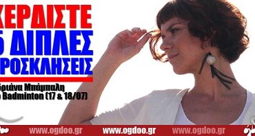 Το Ogdoo.gr εξασφάλισε για τους αναγνώστες του πέντε διπλές προσκλήσεις για τη συναυλία της Ανδριάνας Μπάμπαλη με τον Πάρι Περισυνάκη, στο μουσικό προαύλιο του Badminton, την Τρίτη 17 Ιουλίου.