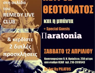 Το Remedy Live Club διοργανώνει διαγωνισμό και σας δίνει τη δυνατότητα να κερδίσετε 2 διπλές προσκλήσεις για τη συναυλία του Πέτρου Θεοτοκάτου το Σάββατο 12 Απριλίου.