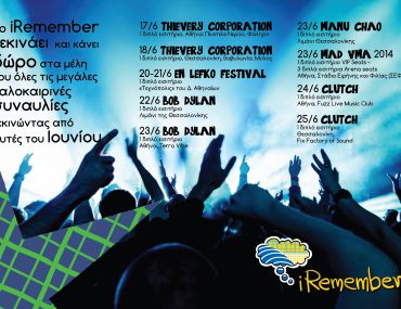 Το iRemember κληρώνει διπλά εισιτήρια για τις μεγάλες συναυλίες του καλοκαιριού. Thievery Corporation,Manu Chao, Bob Dylan είναι μερικά μόνο από τα μεγάλα ονόματα που μερικοί από εσάς θα μπορέσουν να παρακολουθήσουν εντελώς δωρεάν!