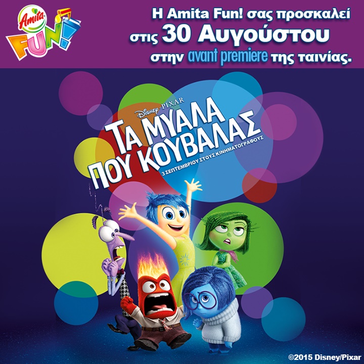 H Amita διοργανώνει διαγωνισμό και δίνει τη δυνατότητα σε 60 τυχερούς να κερδίσουν από μία πρόσκληση για την avant premiere της ταινίας της Disney “Τα μυαλά που κουβαλάς”!
