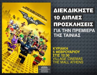 Το infokids.gr διοργανώνει διαγωνισμό και σας δίνει τη δυνατότητα να κερδίσετε 15 διπλές προσκλήσεις για την avant premiere της ταινίας της νέας ταινίας κινουμένων σχεδίων “LEGO Batman”!