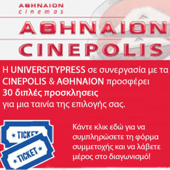 H University Press σε συνεργασία με τα CINEPOLIS & ΑΘΗΝΑΙΟΝ προσφέρει 30 διπλές προσκλήσεις για μία ταινία της αρεσκείας σας.
