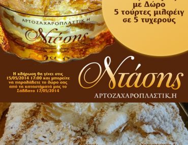 Τα Αρτοζαχαροπλαστεία Ντάσης – ntasis.gr διοργανώνουν διαγωνισμό και σας δίνουν τη δυνατότητα να κερδίσετε 5 τούρτες μιλφέιγ.
