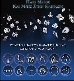 Η ΑΒ Βασιλόπουλος διοργανώνει διαγωνισμό με τίτλο «Κέρδισε το Αγαπημένο σου Χειροποίητο Κόσμημα!» και δίνει τη δυνατότητα σε 12 τυχερούς να κερδίσουν, ένα κρεμαστό μονόπετρο, σκουλαρίκια κρίκους, ένα σετ 2 Δαχτυλιδιών Λευκό/Μαύρο, ένα δαχτυλίδι μονόπετρο, ένα σετ 4 τεμ. σκουλαρίκια Λευκό/Γκρι, μια κρεμαστή καρδιά, ένα κρεμαστό σταυρό, ένα δαχτυλίδι μισοφέγγαρο, ένα σετ 3 δαχτυλιδιών, ένα βραχιόλι Ριβιέρα, ένα κολιέ Ριβιέρα και ένα σετ Κολιέ με Λευκές Πέρλες και Σκουλαρίκια.