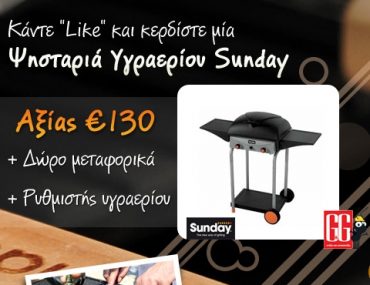 Το ggshop.gr διοργανώνει διαγωνισμό και σας δίνει τη δυνατότητα να κερδίσετε μια ψησταρία υγραερίου Sunday αξίας 130€.