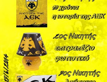 Οι AEK21FANS™ διοργανώνουν διαγωνισμό και σας δίνουν τη δυνατότητα να κερδίσετε το βιβλίο 90 χρόνια η Ιστορία της ΑΕΚ, ένα επιτραπέζιο φωτιστικό και ένα λούτρινο μαξιλάρι!