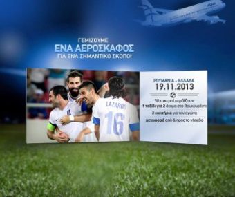 Η AEGEAN AIRLINES διοργανώνει διαγωνισμό και δίνει τη δυνατότητα σε 50 τυχερούς να κερδίσουν 1 ταξίδι για 2 άτομα στο Βουκουρέστι, 2 εισιτήρια για τον αγώνα και μεταφορά από και προς το γήπεδο! Στηρίζουμε το ταξίδι της Εθνικής μας προς την πρόκριση στο Μουντιάλ στις 19/11!