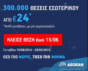 Η Aegean Airlines σας προσφέρει 300.000 θέσεις εσωτερικού από 24€! ταξιδέψτε τώρα στη Θεσσαλονίκη, στο Ηράκλειο, στη Ρόδο, στα Χανιά, στη Μυτιλήνη και στην Κω με τις χαμηλότερες τιμές!
