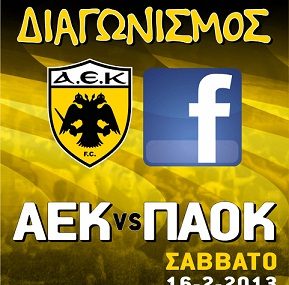 Η AEK FC διοργανώνει διαγωνισμό και δίνει τη δυνατότητα σε 5 νικητές να κερδίσουν διπλές προσκλήσεις για τον εντός έδρας αγώνα που θα διεξαχθεί το Σάββατο 16/2/2013 ΑΕΚ – ΠΑΟΚ.