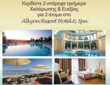 Το Alkyon Resort Hotel & Spa διοργανώνει διαγωνισμό και δίνει τη δυνατότητα σε 3 τυχερά ζευγάρια να κερδίσουν από 2 διανυκτερεύσεις με ημιδιατροφή και πακέτο spa!