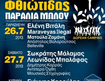 Το allaboutmusic.gr εξασφάλισε για εσάς 2 διπλές προσκλήσεις, αξίας 30€ η μια, για το Φεστιβάλ “Νύχτες Φθιώτιδας” που θα διεξαχθεί στην παραλία Μώλου από τις 26 μέχρι και τις 28 Ιουλίου!