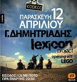 Το allaboutmusic.gr εξασφάλισε για εσάς 3 διπλές προσκλήσεις για την συναυλία του Γιώργου Δημητριάδη με τους Lexicon Project στο KOOKOO live bar την Παρασκευή 12 Απριλίου!
