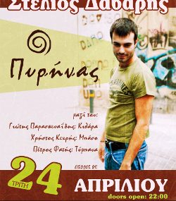 Το Free Press περιοδικό ALTER VITA σε συνεργασία με τον Μουσικό Χώρο ”ΠΥΡΗΝΑΣ” εξασφάλισε για εσάς, τρεις διπλές προσκλήσεις για Τρίτη 24 Απριλίου για την εμφάνιση του Στέλιου Δάβαρη στον «Πυρήνα».