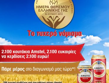 Ο ΑΒ Βασιλόπουλος διοργανώνει διαγωνισμό και σας προσφέρει 2.100 κουτάκια Amstel! 88 τυχεροί θα κερδίσουν από ένα κιβώτιο μπίρες Amstel.