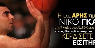 Η Κ.Α.Ε. ΑΡΗΣ διοργανώνει διαγωνισμό μέσω της επίσημης σελίδας της στο Facebook και 5 τυχεροί φίλαθλοι μπορούν να κερδίσουν εισιτήρια για την τιμητική εκδήλωση του Νίκου Γκάλη που θα πραγματοποιηθεί στις 7 Μαΐου στο Αλεξάνδρειο Αθλητικό Μέλαθρο Θεσσαλονίκης.