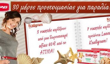 Η σελίδα Lanes Health διοργανώνει το διαγωνισμό «30 μέρες προετοιμασίας για παραλία!» και σας προσκαλεί να παίξετε και να διεκδικήσετε μοναδικά δώρα. 3 μεγάλοι νικητές κερδίζουν από 1 δωροεπιταγή αξίας 60 ευρώ από το πολυκατάστημα Attica και 7 νικητές κερδίζουν προϊόντα Lanes Kcaligram.