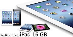 Θέλετε να κερδίσετε ένα ολοκαίνουργιο Apple iPad 16 GB; Την τρίτη γενιά της διάσημης ταμπλέτας της Apple με τον Α5Χ επεξεργαστή και την Retina οθόνη υψηλής ανάλυσης. Το AutoBlog.gr σας δίνει την ευκαιρία να το κάνετε δικό σας σε ό,τι χρώμα το επιθυμείτε (μαύρο ή λευκό) μέσα από μια απλή διαδικασία.