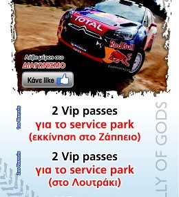 Η σελίδα Avance Car Rental διοργανώνει διαγωνισμό και σας δίνει τη δυνατότητα να κερδίσετε 2 vip passes για την εκκίνηση του ράλι Ακρόπολις στο Ζάππειο, 2 vip passes για το service park του στο Λουτράκι και 2 vip passes για τον τερματισμό του στο Ζάππειο.