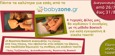 Το babyzone.gr διοργανώνει διαγωνισμό και σας δίνει τη δυνατότητα να κερδίσετε 5 συνεδρίες με τη μέθοδο Bowtech για καλή εγκυμοσύνη & εύκολο τοκετό σε 4 τυχερές.