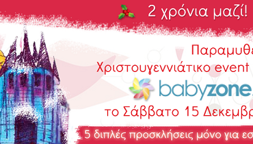 Γιορτάζουμε & καλούμε 10 από εσάς στο Παραμυθένιο Χριστουγεννιάτικο event του babyzone.gr το Σάββατο 15 Δεκεμβρίου. 3 ώρες ατελείωτης ξεγνοιασιάς με τη μαγική παιδική παράσταση «Από πού πάνε για το κάστρο, παρακαλώ;», θεατρικό παιχνίδι, face painting, Χριστουγεννιάτικες εκπλήξεις και δώρα.