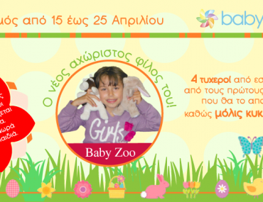 Το babyzone.gr διοργανώνει διαγωνισμό και σας δίνει τη δυνατότητα να κερδίσετε 4 ζωάκια Baby Zoo (μαλακό παιχνίδι κομπρέσα): 2 αρκουδάκια και 2 γουρουνάκια, 1 για κάθε νικητή, με οποιοδήποτε τύπο γεμίσματος (Cherry Seeds ή Gel Pad) επιλέξει!