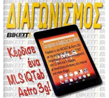 To bikeit.gr διοργανώνει διαγωνισμό και σας δίνει τη δυνατότητα να κερδίσετε ένα tablet MLS iQTab Astro 3G!