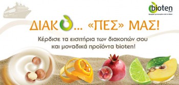 Η bioten διοργανώνει διαγωνισμό και δίνει τη δυνατότητα σε 1 τυχερό να κερδίσει ακτοπλοϊκά εισιτήρια μετ’επιστροφής για 2 άτομα σε οποιοδήποτε νησί των Κυκλάδων επιθυμεί και σε άλλους 10 να κερδίσουν από ένα σετ προϊόντων bioten.