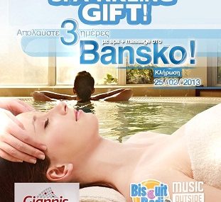 Ο BiscuitRadio υποδέχεται την άνοιξη με ένα μοναδικό, λαμπερό τριήμερο για δύο ακροατές του, στο Bansko της Βουλγαρίας. Από τις 04 έως και τις 25 Φεβρουαρίου, οι ακροατές του πιο outsidethebox μουσικού ραδιοφώνου έχουν την ευκαιρία να διεκδικήσουν ένα τριήμερο σε ξενοδοχείο τεσσάρων (4) αστέρων στο Bansko της Βουλγαρίας με δωρεάν τη χρήση του spacenter. Πισίνα, σάουνα, χαμάμ και υδρομασάζ θα είναι όλα στη διάθεση του τυχερού ή της τυχερής και του συνοδού του/της. Παρασκευή, Σάββατο και Κυριακή, 1-3 Μαρτίου, ο B! iscuitRadio θα κάνει δύο τυχερούς να λάμψουν από χαλάρωση!