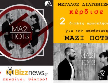 Το Bizznews.gr σε συνεργασία με το Θέατρο Άβατον διοργανώνουν διαγωνισμό, με δώρο 2 διπλές προσκλήσεις για την θεατρική παράσταση “Μαζί Ποτέ”, που παρουσιάζεται τη φετινή σεζόν με πρωταγωνιστές τους Ηλία Παρασκευόπουλο και Λία Τσάνα!