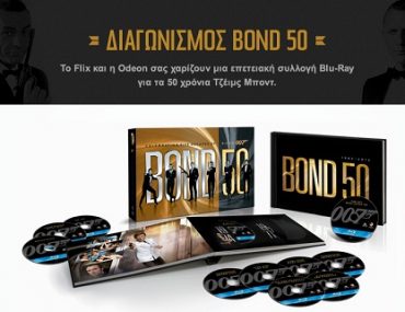 Το Flix.gr και η Odeon γιορτάζουν τα 50 χρόνια από την πρώτη κινηματογραφική περιπέτεια του πιο θρυλικού πράκτορα της μεγάλης οθόνης και σας χαρίζουν μια επετειακή συλλογή που περιλαμβάνει και τις 22 ταινίες του Τζέιμς Μποντ σε Blu-Ray και περισσότερες από 120 ώρες extra υλικού.