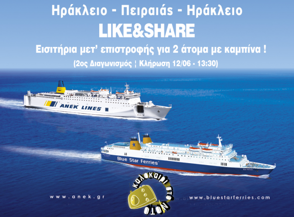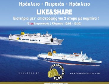 Δηλώστε συμμετοχή στον δεύτερο διαγωνισμό για εισιτήρια από και πρός Κρήτη, για 2 άτομα με καμπίνα προσφορά των εταιριών ANEK Lines & Blue Star Ferries!