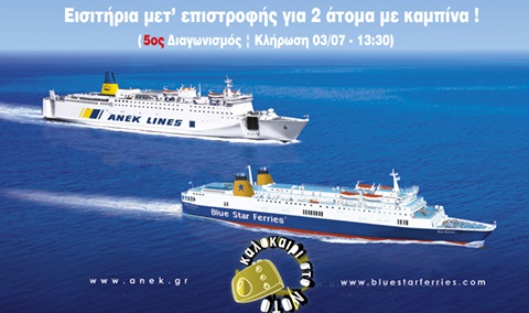 Η Blue Star Ferries διοργανώνει διαγωνισμό και δίνει τη δυνατότητα σε 2 τυχερούς να κερδίσουν ακτοπλοϊκά εισιτήρα για 2 άτομα με επιστροφή προς τις Κυκλάδες τα Δωδεκάνησα το Β.Α. Αιγαίο και την Κρήτη!