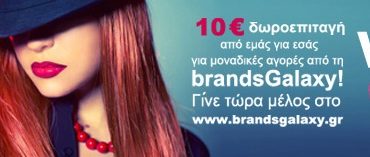 Γίνετε τώρα μέλος της brandsGalaxy για να απολαύσετε κι εσείς μοναδικά προνόμια! Με την εγγραφή σας έχετε μία επιταγή 10€ στο λογαριασμό σας δώρο για την πρώτη σας αγορά.