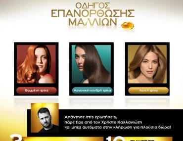 Η σελίδα Pantene Greece διοργανώνει διαγωνισμό και σας δίνει τη δυνατότητα να κερδίσετε 3 σετ με συσκευές μαλλιών Braun (1 πιστολάκι μαλλιών και 1 κεραμικό σίδερο ισιώματος Satin Hair 7) και 10 πακέτα με προϊόντα μαλλιών Pantene Pro-V (1 σαμπουάν, 1 conditioner και 1 μάσκα μαλλιών της σειράς Αναδόμηση και Προστασία).