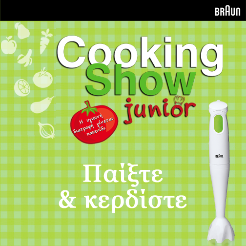 Το Cooking Show διοργανώνει διαγωνισμό και σας δίνει τη δυνατότητα να πρωταγωνίστησετε στη δική σας εκπομπή μαγειρικής και να κερδίσετε ένα ραβδομπλέντερ Braun MQ775 Patisserie.