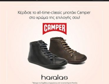 Η σελίδα των Καταστημάτων Haralas διοργανώνει διαγωνισμό και σας δίνει τη δυνατότητα να κερδίσετε τα all time classic αντρικά μποτάκια Camper.