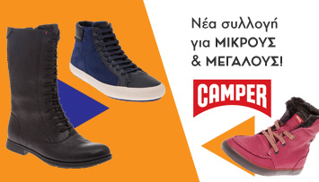 Το Melinamay.com σας παρουσιάζει τη νέα συλλογή Camper για μικρούς και μεγάλους σε απίστευτες τιμές! Εδώ θα βρείτε μεγάλη ποικιλία σε σχέδια και χρώματα με μεγάλες εκπτώσεις!