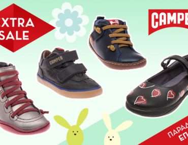 Τα παπούτσια Camper είναι γνωστά για τα μοναδικά σχέδια τους αλλά και για την άνεση που χαρίζουν στο περπάτημα. Το MelinaMay.com συγκέντρωσε τα καλύτερα σχέδια για τους μικρούς μας φίλους με έκπτωση έως -50%. Κάνε σήμερα την παραγγελία σου από το MelinaMay.com και θα τα έχεις κοντά σου την επόμενη μέρα. Κάνε το καλύτερο πασχαλινό δώρο στους μικρούς μας φίλους!