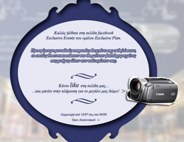 Το facebook page της Exclusive Events διοργανώνει διαγωνισμό και σας δίνει τη δυνατότητα να κερδίσετε μία ψηφιακή βιντεοκάμερα CANON LEGRIA HF R206.