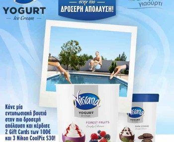 Ανεβάστε τη φωτογραφία σας, βουτήξτε στο NIRVANA Yogurt Forest Fruits ή στο NIRVANA Yogurt Dark Cookies και διεκδικήστε 2 gift cards αξίας 100€ και 3 αδιάβροχες φωτογραφικές μηχανές Canon Coolpix S30.