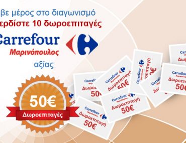 Tα Carrefour Μαρινόπουλος διοργανώνουν διαγωνισμό και σας δίνουν τη δυνατότητα να κερδίσετε 10 δωροεπιταγές αξίας 50€.