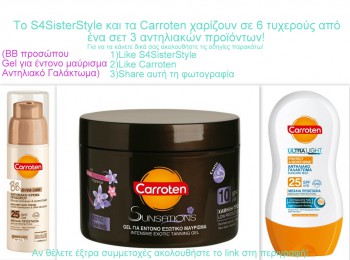 Τo S4SisterStyle και η Carroten | STAR του καλοκαιριού κάνουν δώρο σε 6 τυχερούς από ένα σετ 3 αντηλιακών προϊόντων! Το σετ περιλαμβάνει τη νέα ΒΒ αντηλιακή κρέμα,το Ultra Light αντηλιακό γαλάκτωμα και το τζελ έντονου μαυρίσματος!